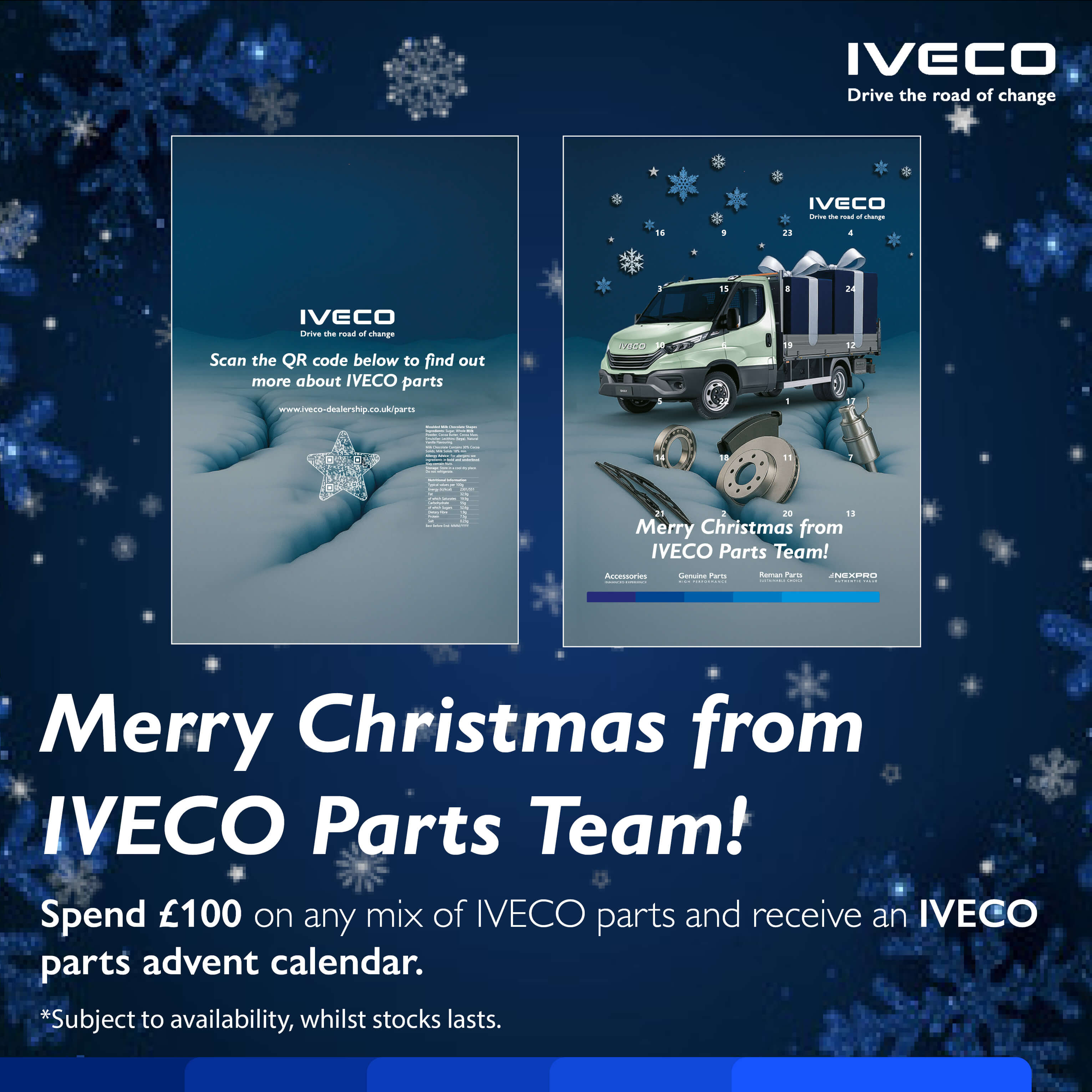 Spend £100 on any mix of IVECO parts and receive an IVECO parts advent calendar.